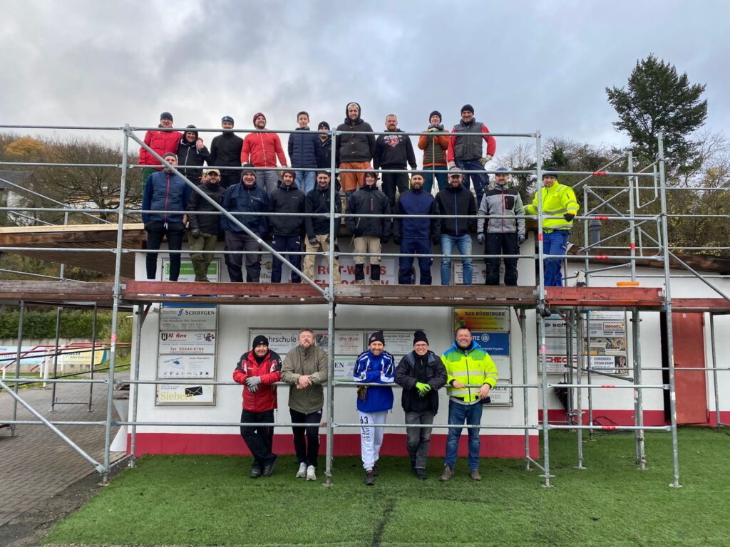 2023: 25.11.: Die 25 freiwilligen Helfer beim Abriss des alten Clubheim Daches.