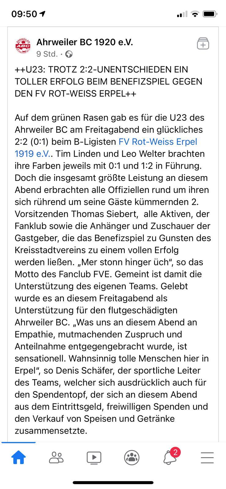 Wie viele andere Vereine an der Ahr, hat auch der BC Ahrweiler keinen Fußballplatz mehr, um zu trainieren oder Spiele auszutragen. Die Einladung zu einem Freundschaftsspiel wurde von ihnen dankend angenommen. Auf Seiten des FV Erpel hofft man, dass viele Zuschauer kommen und ein schöner Spendenbetrag zusammen kommt.