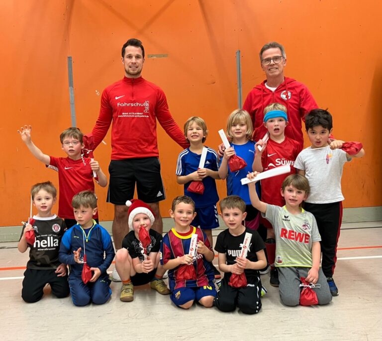 2023: 07. Dez.: Die Bambini FV Erpel mit der Nikolaustüte.