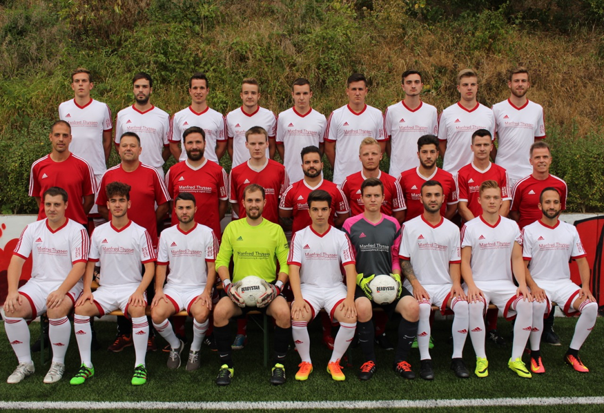 Bild: Trainer Eskandar Zamani, Beisitzer Stefan Heck, 2. Vorsitzender Thomas Siebert, George Bikhan, Dominic Diener, Lars Kubach, Christian Monschau, Jannik Brungs, Michael Siebert, Nils Blätgen, Marvin Handschuhmacher, Tobias Krupp, Christian Thyssen, Julian Fröhlich, Marcel Rick, Julien Pinto-Soares, Sebastian Krupp, Ayberk Mamo, Pascal Schlebach. Unten links: Florian Schneider, 1. Vorsitzender Lothar Bonn, Fernando Bonn, Thomas Kern, Dennis Schneider, Simon Kanschik, Julian Poyatos.