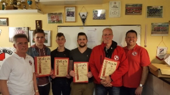 Ein weiterer wichtiger Punkt der Versammlung war die Ehrung langjähriger Mitglieder. Die Ehrennadel in Bronze und eine Urkunde für 10 Jahre erhielten: Uwe Blätgen, Marco Bonn, Georg Krupp, Thomas Lüdtke-Kenn, Maximilian Muß, Lukas Schmitz, Fritz Siebert, Volkan Yavas, Andre van Laack, Sascha Alfter, Reinhold Suhr, Rene Horn. Die Ehrennadel in Silber für 25 Jahre und eine Urkunde erhielt: Frank Kotthoff.