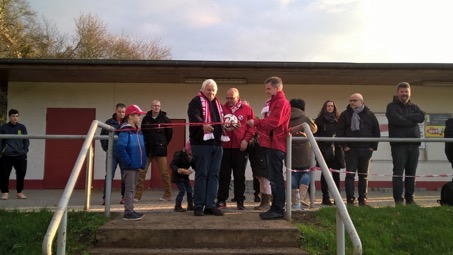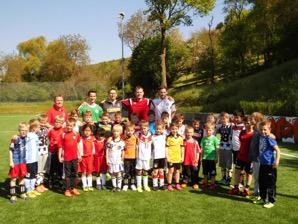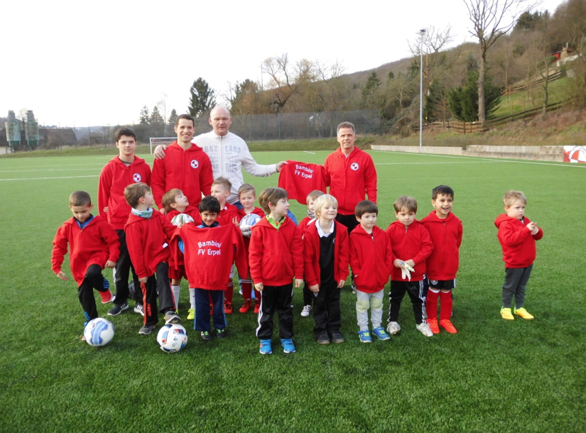 Die Bambini des FV Erpel bei der Übergabe der neuen Kapuzen Sweat Shirts durch Manfred Thyssen.